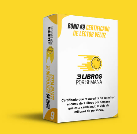 Este certificado te acredita de terminar el curso de 3 Libros por Semana y conocer nuestra metodología que está cambiando la vida de millones de personas. Puedes usarlo para tu portafolio, para presumir con tus amigos o simplemente para estar orgulloso de ser un lector veloz.